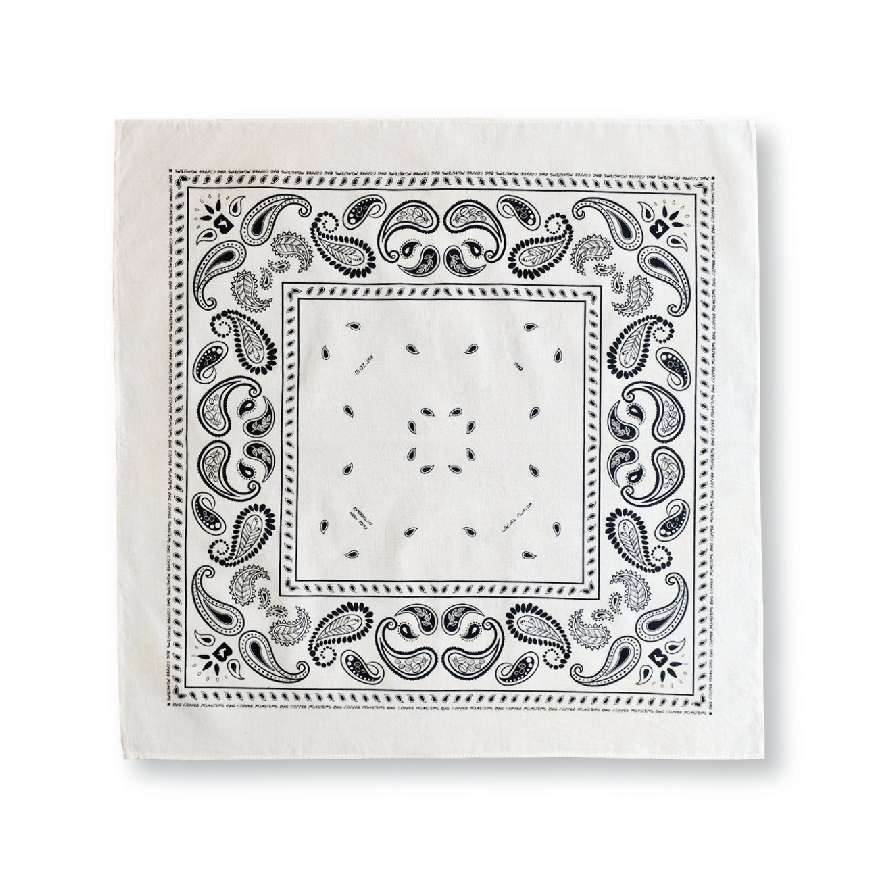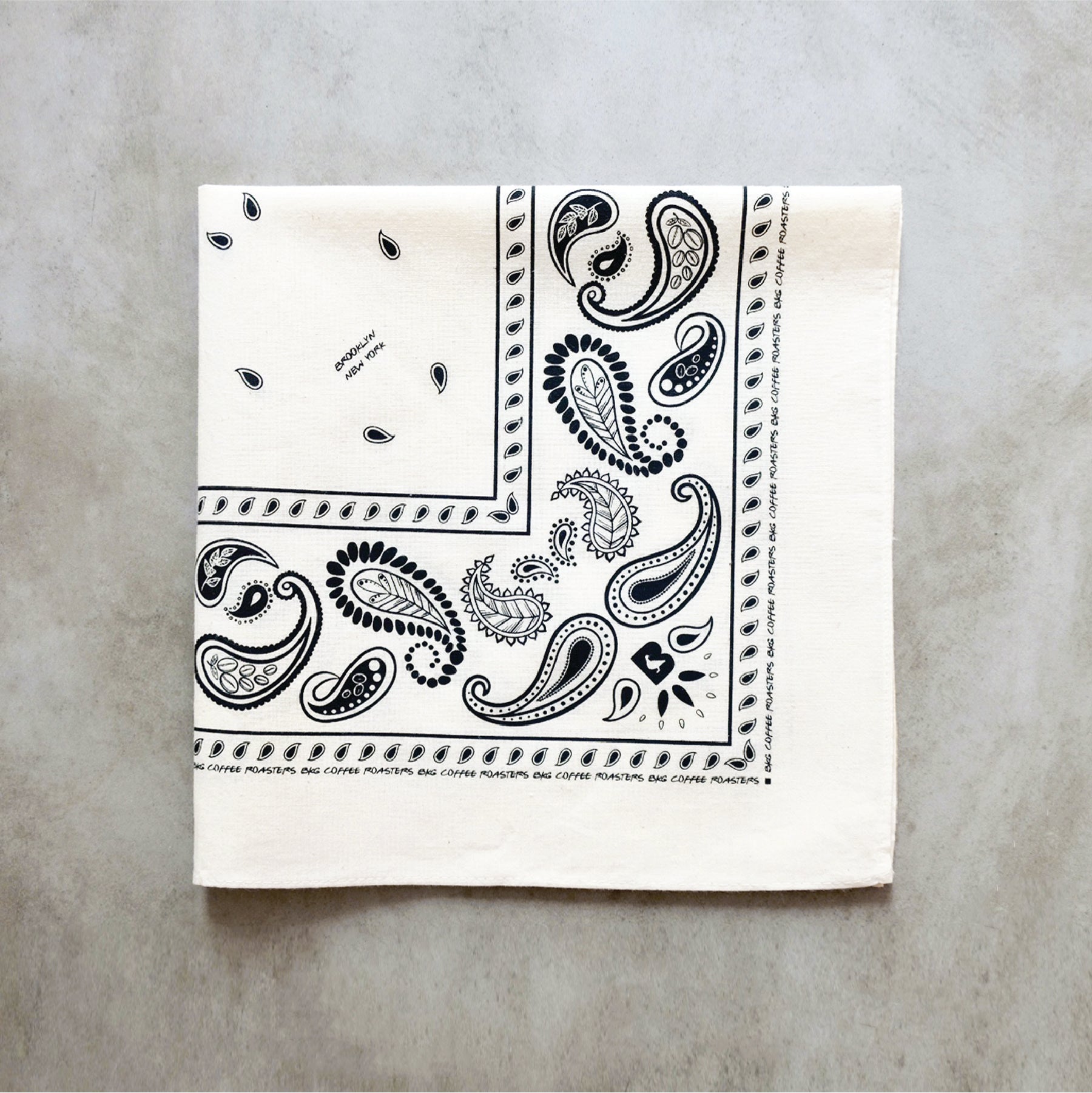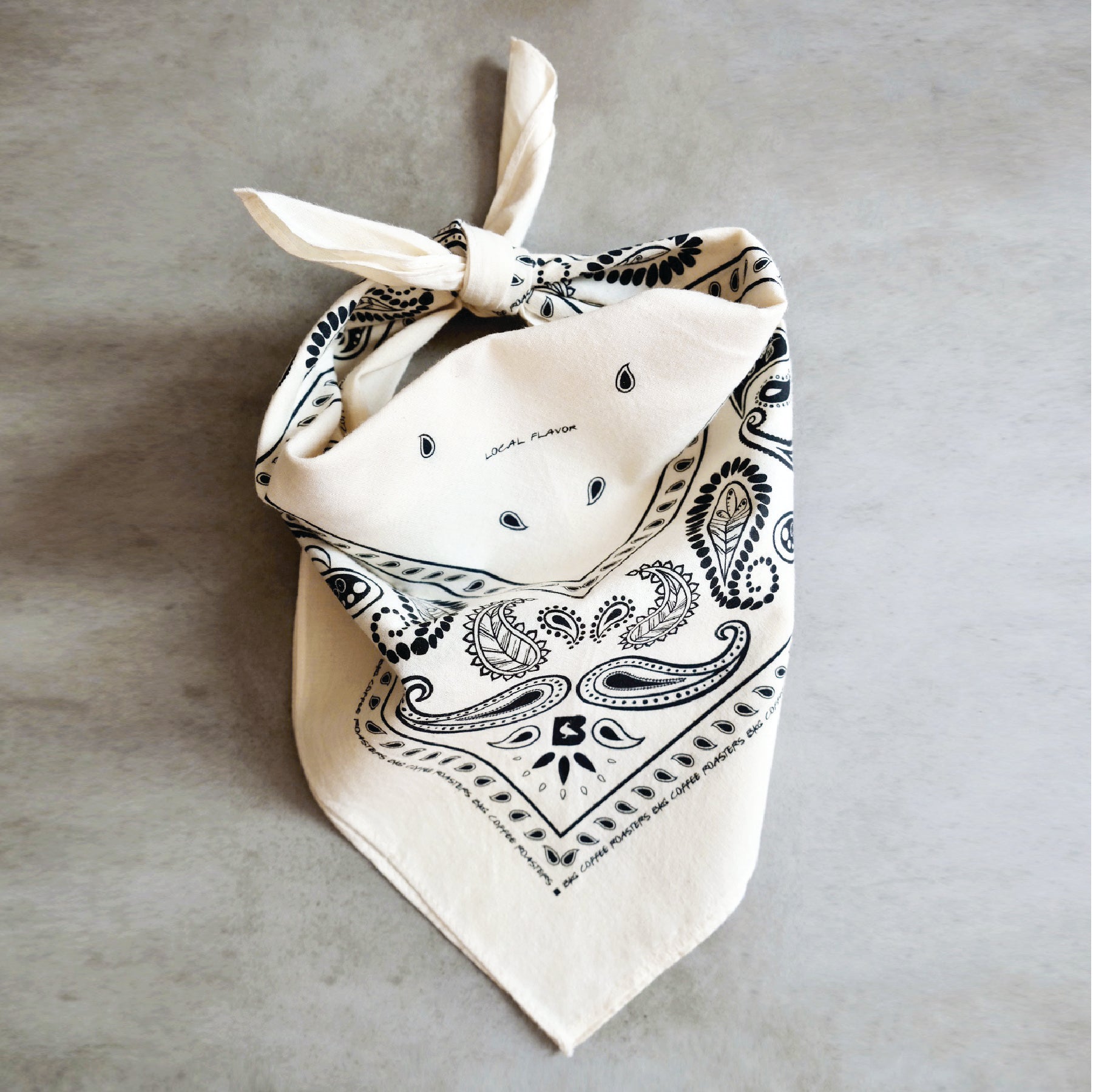 BKG branded paisley. Each bandana is 22" x 22" and printed on 100% cotton natural fabric.