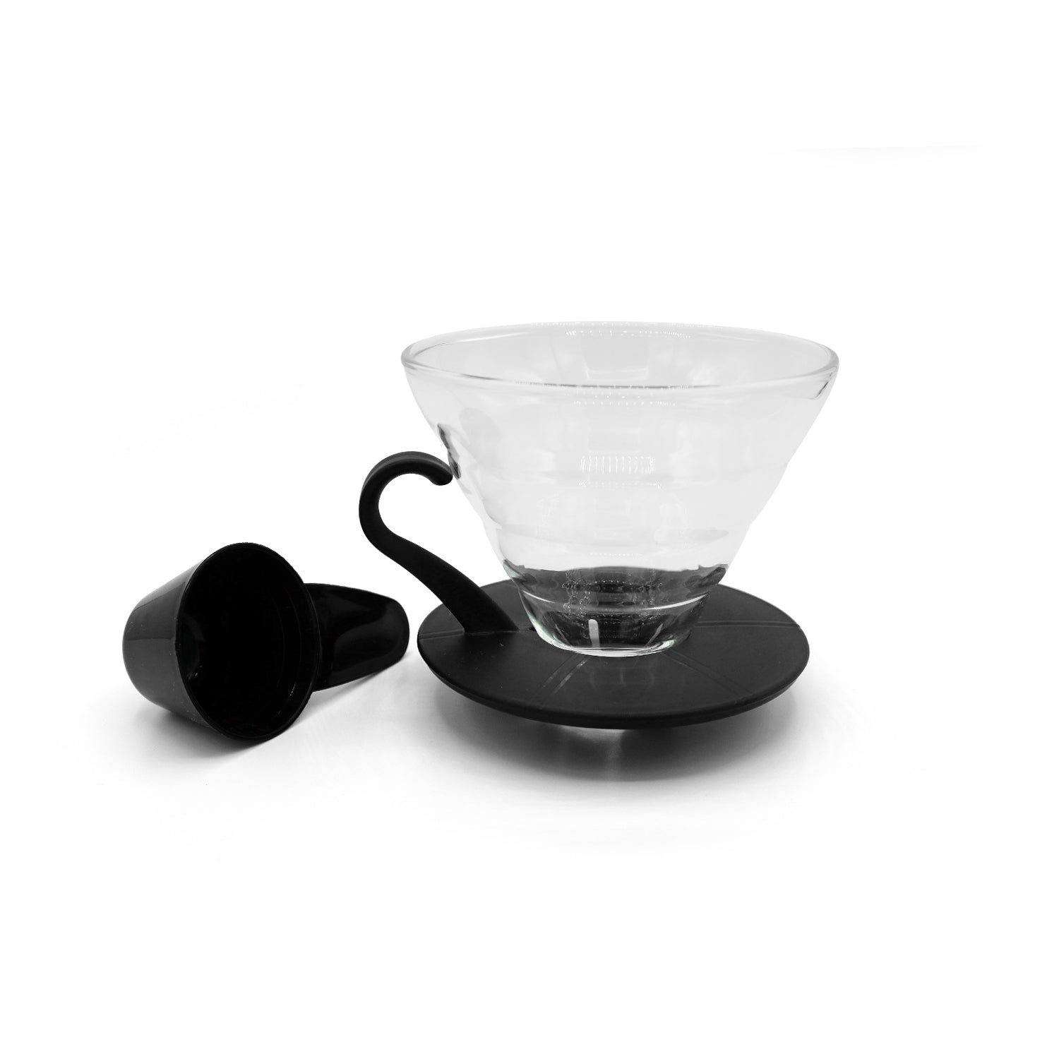 This cone dripper is perfect for brewing 2-4 cups of high-quality coffee. It is made from hand blown borosilicate glass, making it heat resistant, dishwasher safe, and microwave safe. Fits Hario V60 02 Filters.